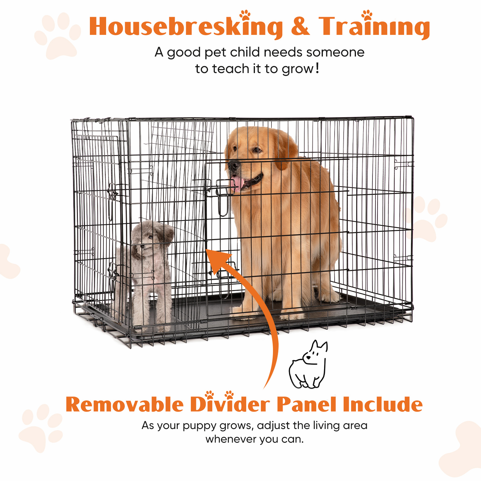 • Adjustable Partition: Divider panel helps adjust space as your pet grows