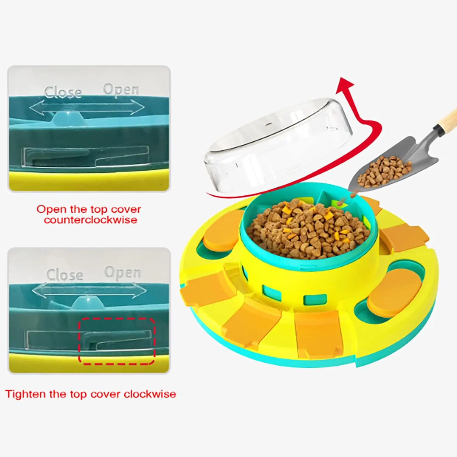 The feeder features 8 snack storage compartments, including 6 flip-top lids and 2 slide-top lids. Your dog learns to use their nose or paws to open different covers, encouraging natural hunting instincts and mental stimulation. Each successful move releases a treat, creating a positive training experience.