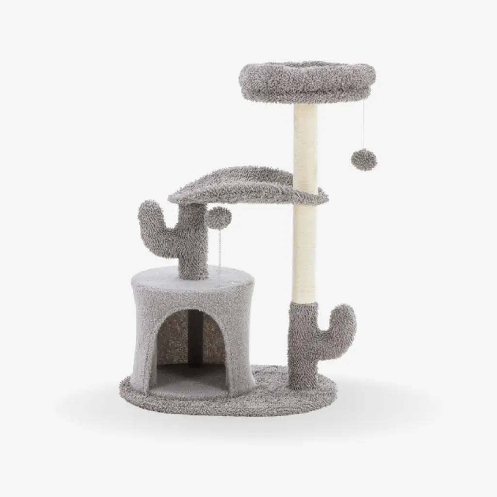 This cactus-shaped cat climbing frame is designed to give your cat a fun, comfortable, and safe place to play and rest. It features a cozy cat bed at the bottom, a curved resting bed in the middle, and a soft plush perch at the top, allowing cats to climb, jump, and relax at different levels.