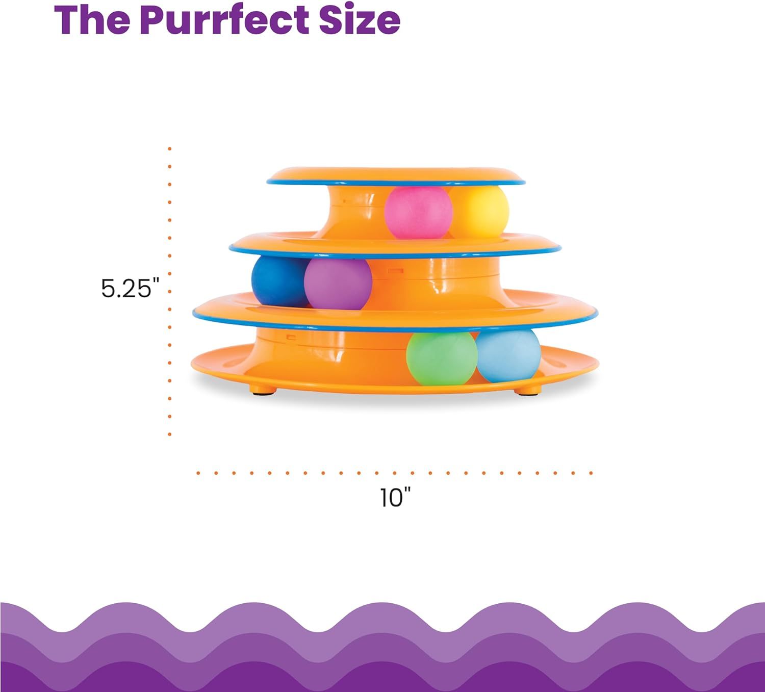 • This multi-level cat toy features 3 tiers and 6 spinning balls, helping to keep your indoor cat active, curious, and entertained.